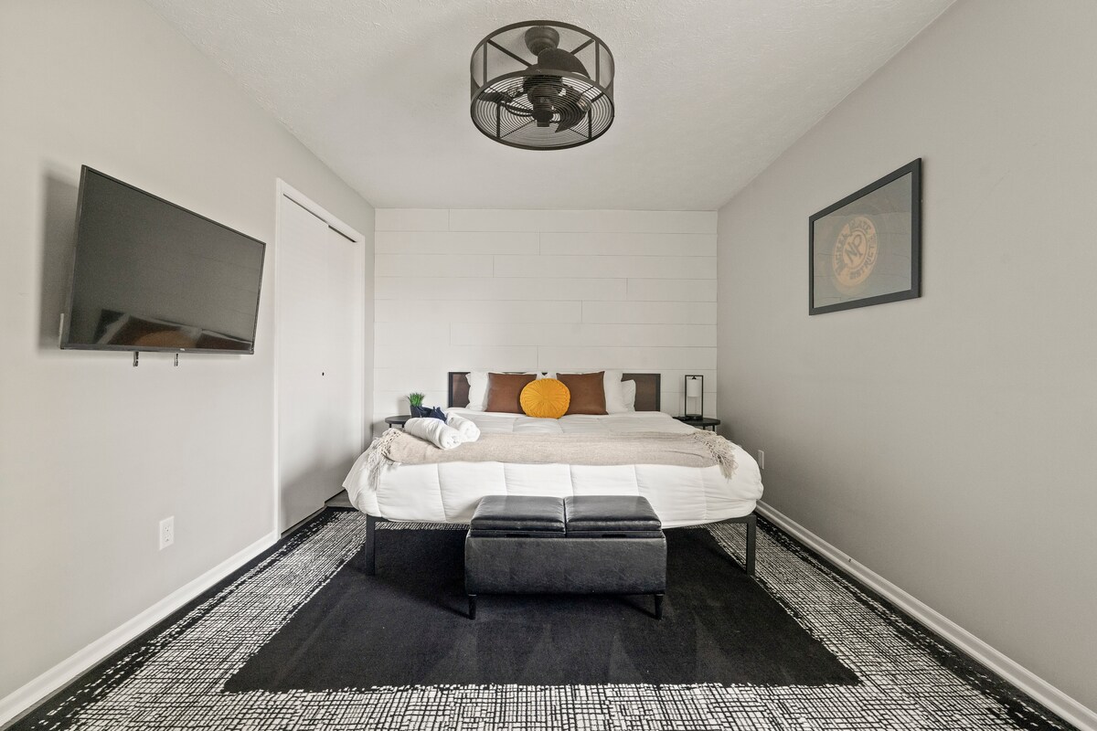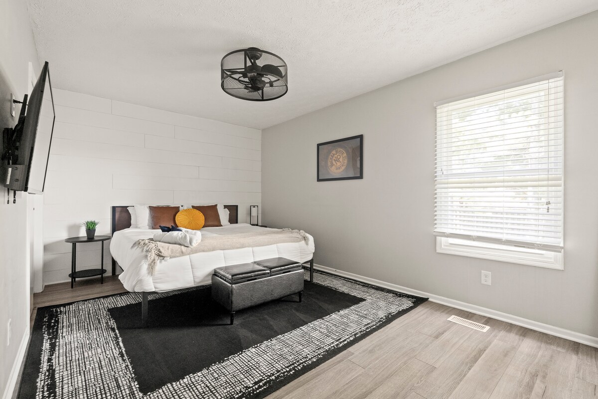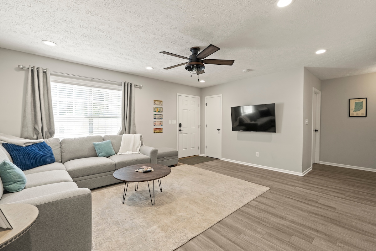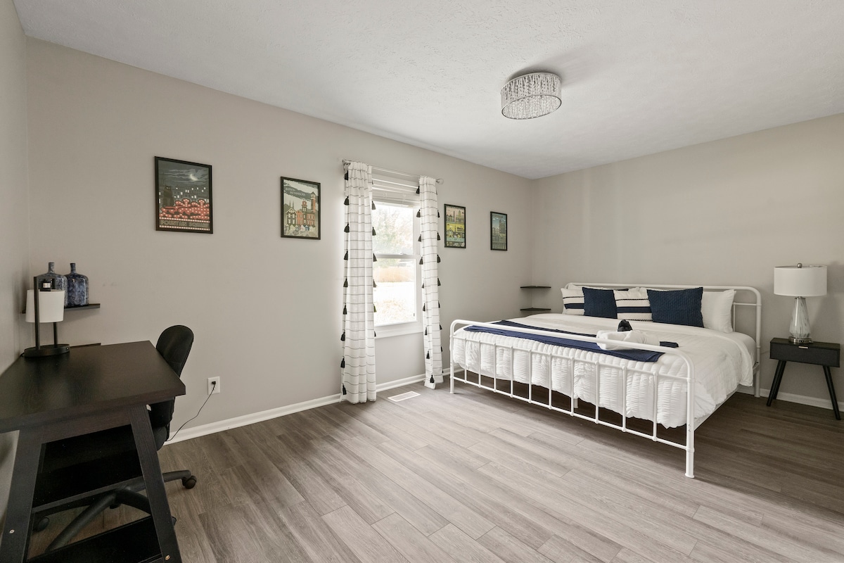 Relax at this peaceful 3-bedroom, 2-bath getaway near Downtown Indianapolis and Fishers. Perfect for families, business travelers, or small groups. Enjoy a full kitchen, workspace, high-speed Wi-Fi, washer/dryer, and a cozy front porch.